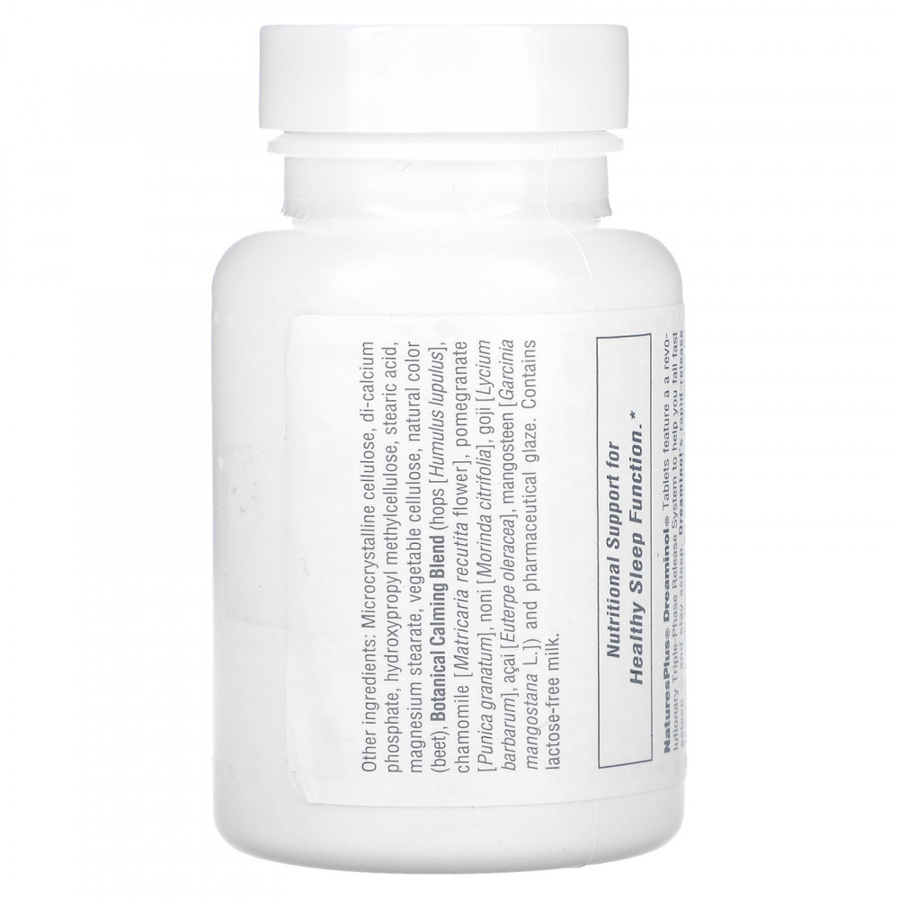 Таблетки NaturesPlus® Dreaminol® имеют революционную трехфазную систему высвобождения, которая помогает вам крепко заснуть - и оставаться во сне. Мелатонин быстрого высвобождения Dreaminol быстро способствует устранению неврологических заболеваний, расслабляя сонливость. Затем, в течение четырех-шести часов, пептиды теплого молока Lactium успокаивают сон, а L-теанин способствует выработке серотонина в мозге. 5-HTP с пролонгированным высвобождением обеспечивает еще более длительную поддержку серотонина для крепкого сна поздней ночью. Dreaminol - это идеальное питательное средство для поддержки сна!
