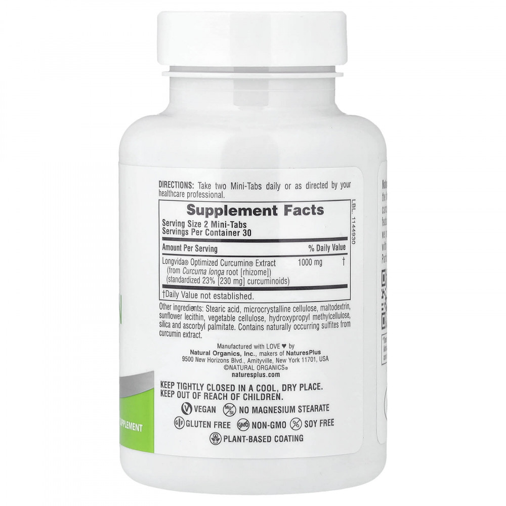 Куркумин 1000 мини-таблеток от NaturesPlus® PRO, первую и единую высокоэффективную мини-таблетку с куркумином, которую легко глотать! Содержит оптимизированный куркумин Longvida® и обеспечивает превосходную усвояемость и активность благодаря нашей запатентованной технологии твердых липидных частиц куркумина (SLCP™M).