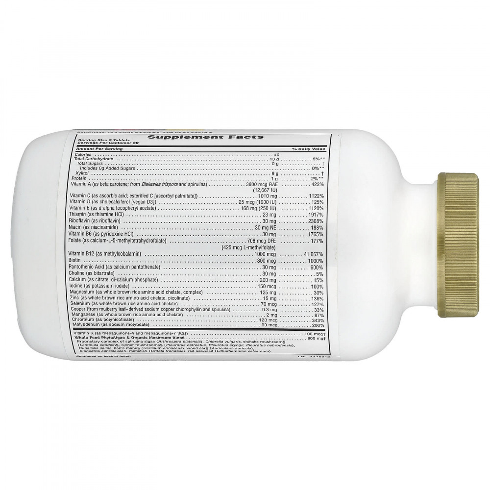 Идеальная мультивитаминная добавка с концентрированными цельными продуктами, витаминами D3, K2 и антиоксидантами.