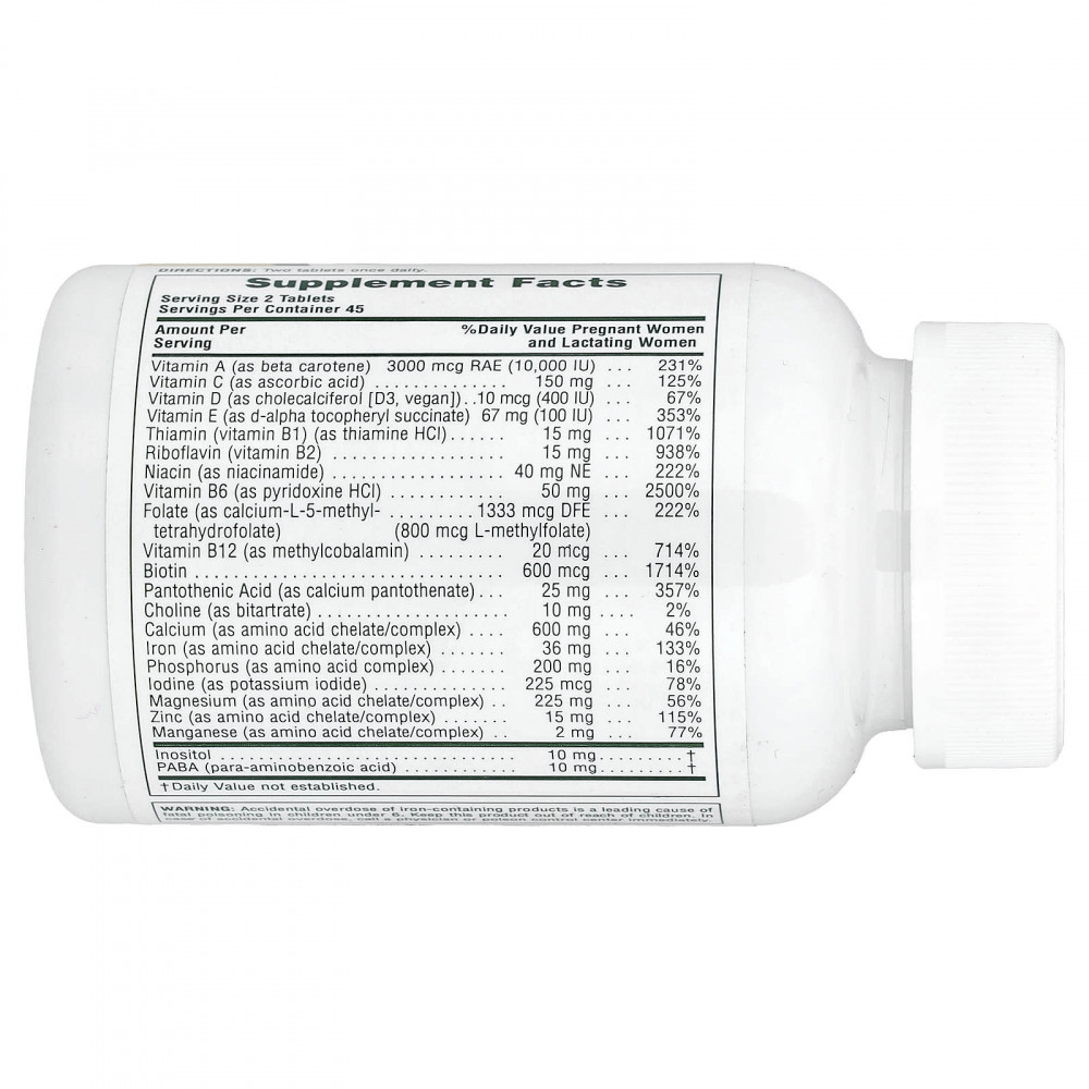 | Фолат (в виде кальций-L-5-метилтетрагидрофолата) | 1333 мкг DFE (800 мкг L-метилфолата | 222% |