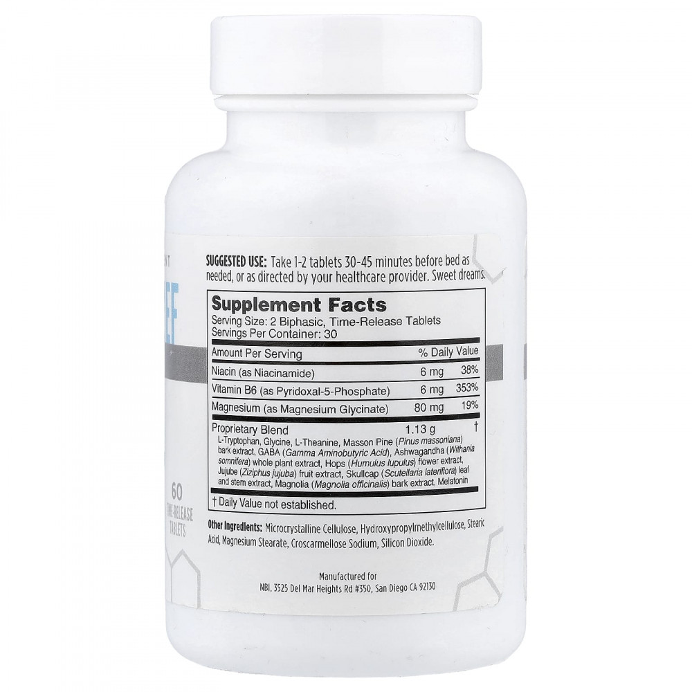 | Запатентованная смесь L-триптофан, глицин, L-теанин, сосна Массона (Pinus Massoniana) экстракт коры, ГАМК (гамма-аминомасляная кислота), ашваганда (Withania somnifera), экстракт цельных растений, экстракт цветков хмеля (Humulus lupulus), экстракт плодов ююбы (Ziziphus jujuba), листья шлемника (Scutellaria lateriflora) экстракт стеблей, экстракт коры магнолии лекарственной (Magnolia officinalis), мелатонин | 1,13 г | † |