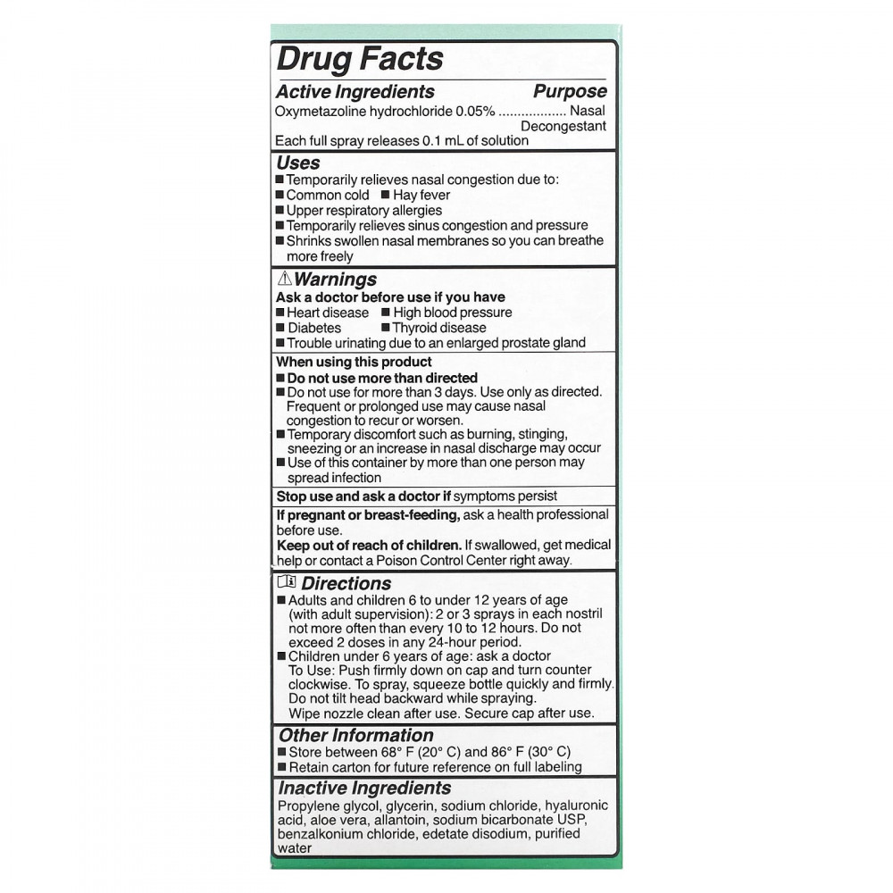 Взрослые и дети от 6 до 12 лет (под присмотром взрослых): 2–3 распыления в каждую ноздрю не чаще, чем каждые 10–12 часов. Не превышайте 2 дозы в течение 24 часов.