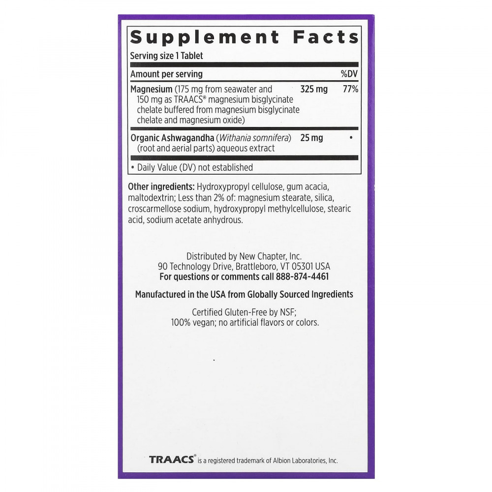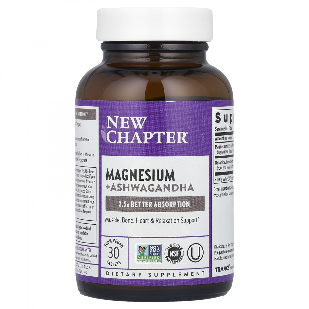 Разработано экспертами для поддержки здоровья на каждый день. Она содержит бисглицинат магния, обеспечивающий оптимальное усвоение, а также магний морского происхождения полного спектра, который обеспечивает жизненно важные микроэлементы. Одна таблетка магния от New Chapter позволяет легко повысить уровень этого питательного вещества, необходимого для более чем 300 функций организма, а также травяного адаптогена ашваганды, который обеспечивает успокаивающую поддержку.