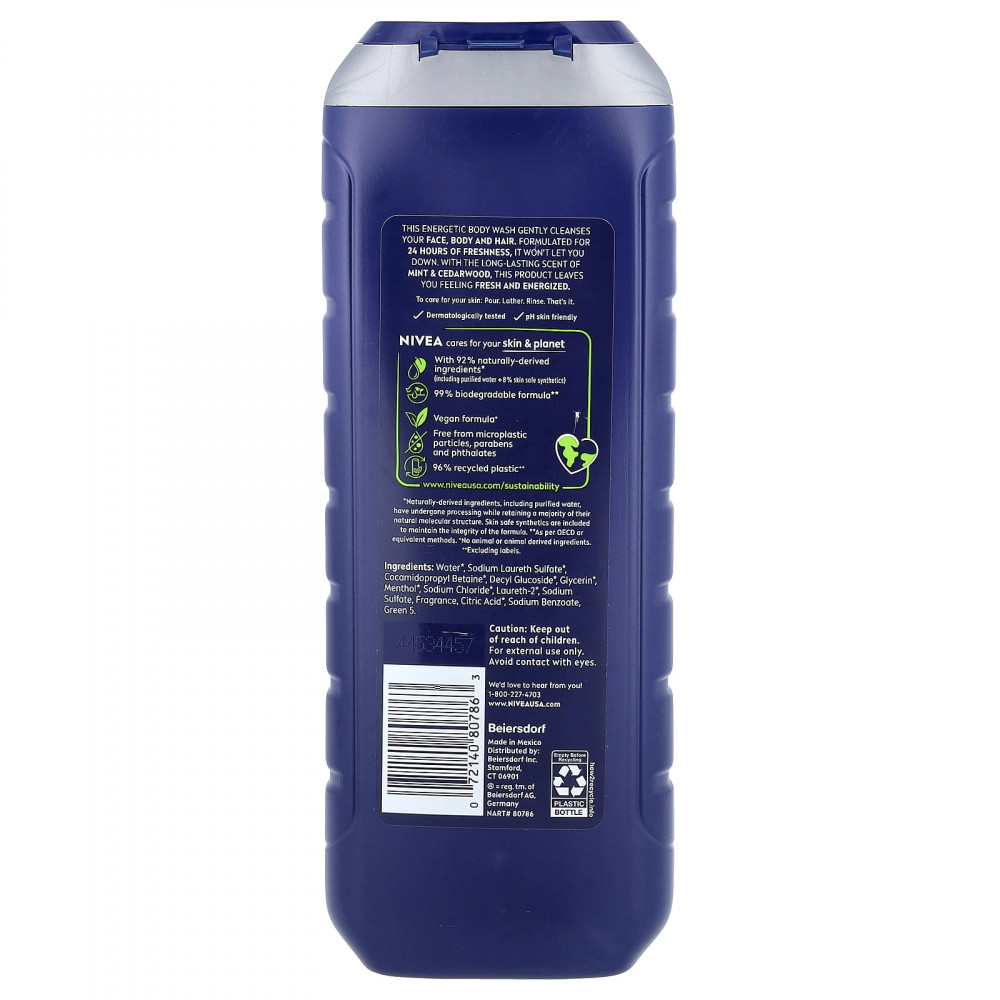 Этот энергетический гель для душа бережно очищает ваше лицо, тело и волосы. Обеспечивает свежесть в течение 24 часов и не подведет. Этот продукт со стойким ароматом мяты и кедра дарит ощущение свежести и заряда энергии.