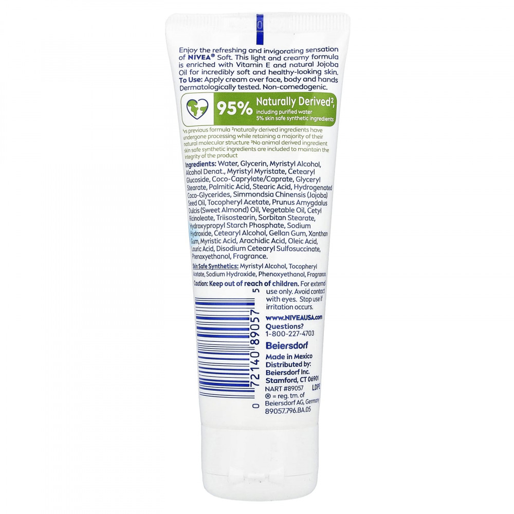 Наслаждайтесь освежающим и бодрящим действием Nivea® Soft. Эта легкая кремообразная формула обогащена витамином Е и маслом жожоба, делающим кожу невероятно мягкой и здоровой.