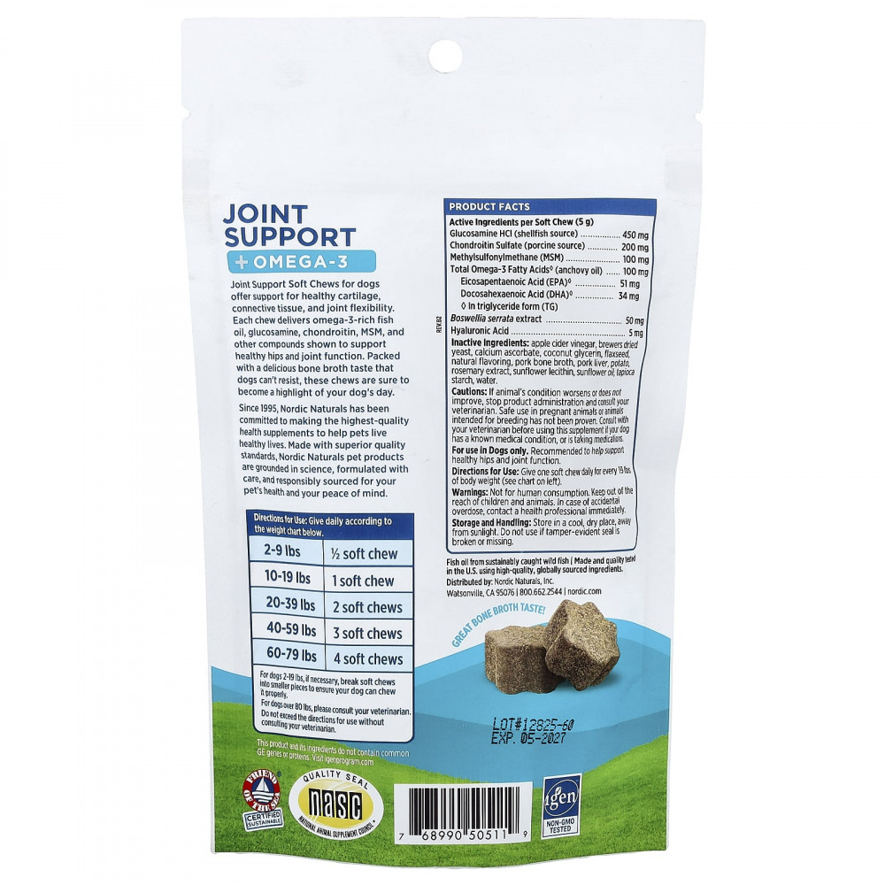 Мягкие жевательные таблетки для поддержки суставов для собак поддерживают здоровье хрящей и соединительной ткани, а также гибкость суставов. Каждая жевательная таблетка содержит рыбий жир, глюкозамин, хондроитин, МСМ и другие соединения, которые, как было доказано, поддерживают здоровье бедер и функцию суставов. Эти жевательные таблетки с восхитительным вкусом костного бульона, перед которым собаки не могут устоять, обязательно станут изюминкой дня вашей собаки.