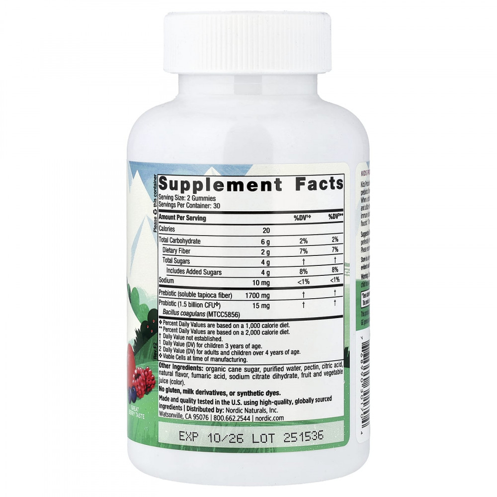 Жевательные таблетки с пробиотиками для детей — это синергетическая смесь пробиотиков и пребиотической клетчатки, которая помогает установить и поддерживать здоровый пищеварительный баланс. Когда пищеварительный тракт ребёнка функционирует должным образом, его организм может лучше усваивать и использовать питательные вещества, необходимые для роста, развития и укрепления иммунитета. Наша уникальная формула пробиотиков способствует развитию полезных бактерий. Эти жевательные таблетки с превосходным вкусом понравятся вашим детям!