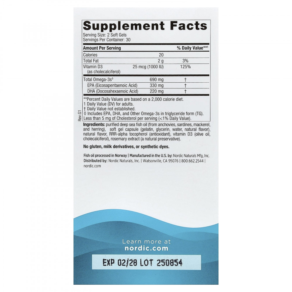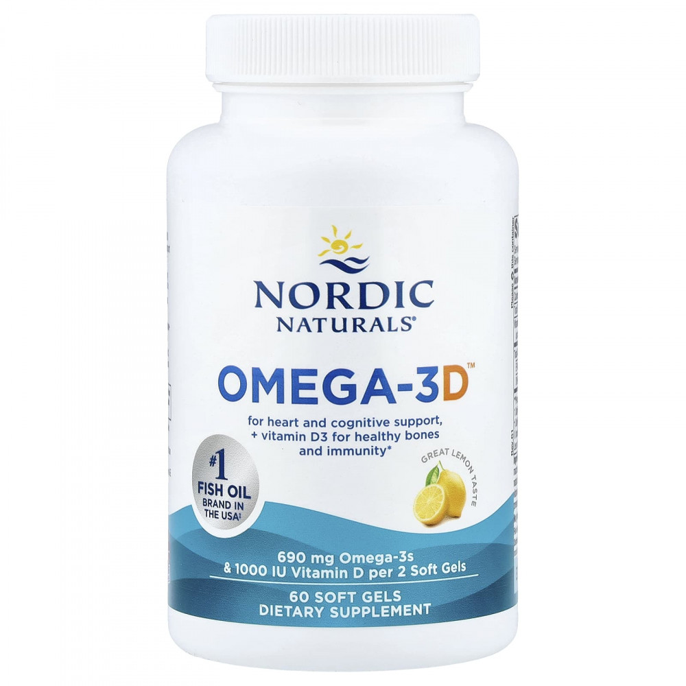 Omega-3D™ от Nordic Naturals содержит 690 мг омега-3 и 1000 МЕ (25 мкг) витамина D3 в каждой порции. Omega-3D обеспечивает комплексную поддержку здоровой работы сердца, мозга и костей, поднимает настроение и укрепляет иммунитет.