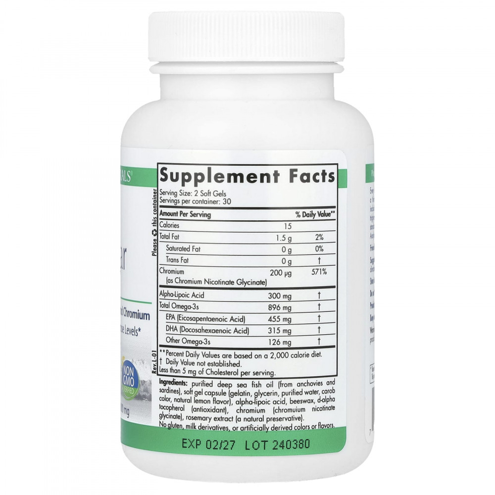 Очищенный жир глубоководных рыб (анчоусов и сардин), желатиновая капсула (желатин, глицерин, очищенная вода, краситель из рожкового дерева, натуральный ароматизатор «Лимон»), альфа-липоевая кислота, пчелиный воск, d-альфа токоферол (антиоксидант), хром (никотинат глицинат хрома), экстракт розмарина (натуральный консервант).