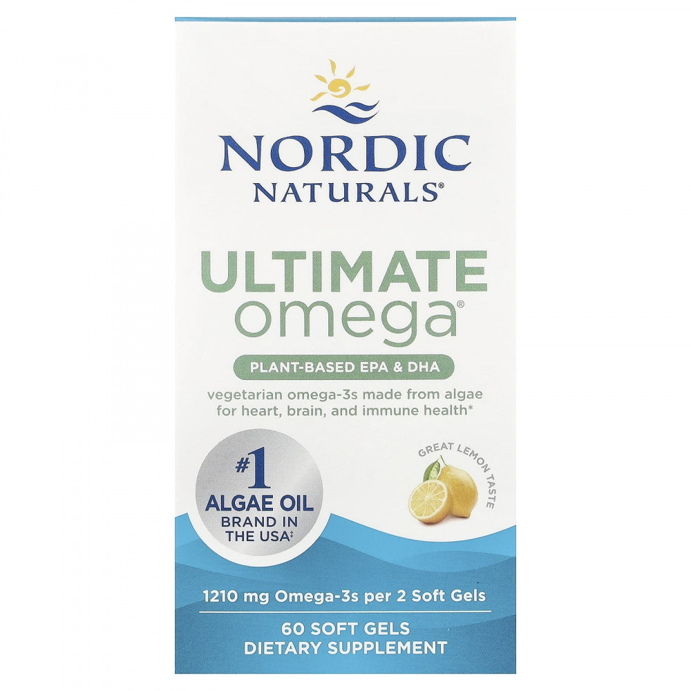Ultimate Omega Plant-Based от бренда № 1 на рынке масел из водорослей в США‡. Всего две капсулы на растительной основе Ultimate Omega содержат 1210 мг омега-3 для высокоинтенсивной поддержки уровня жирных кислот. Эта уникальная экологичная формула на основе водорослей является подходящей для вегетарианцев и веганов альтернативой рыбьему жиру без ущерба для здоровья сердца, мозга и иммунной системы.