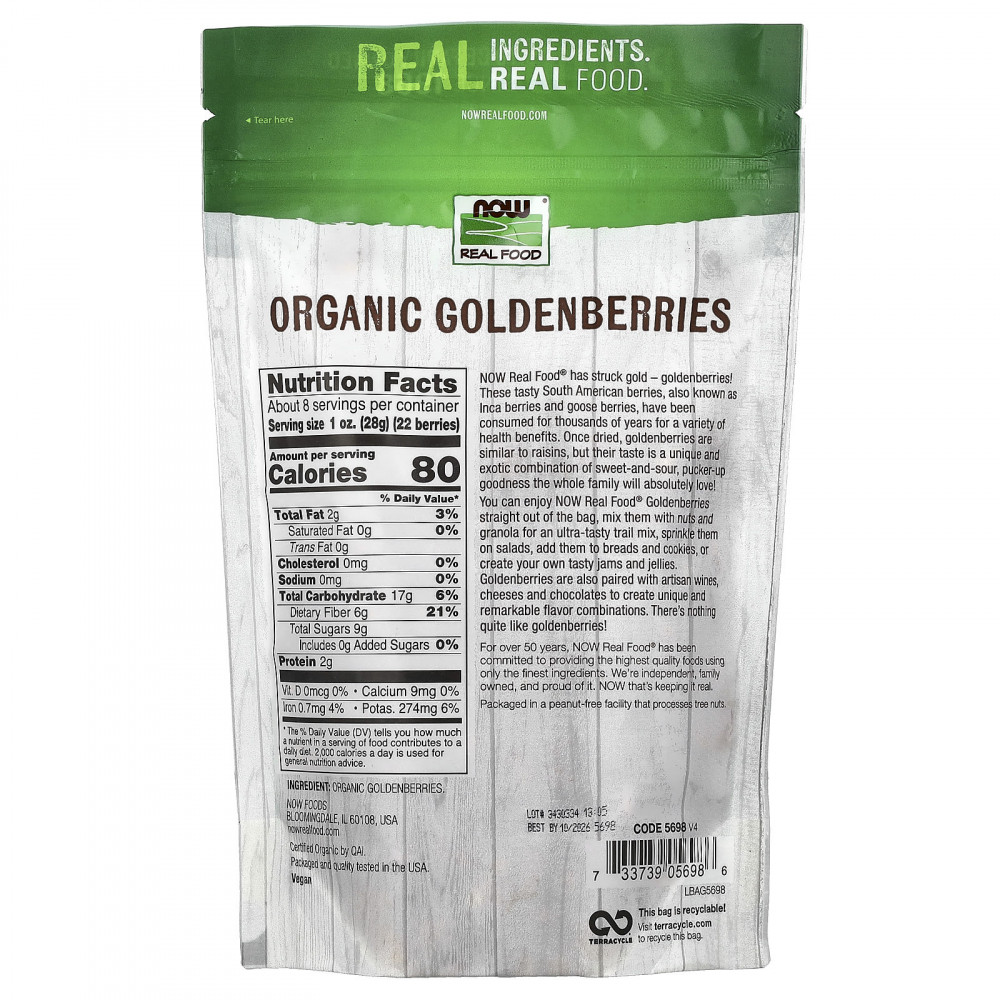 NOW Real Food® пробила золото - физалис!Эти вкусные южноамериканские ягоды, также известные как ягоды инков и гусиные ягоды, использовались на протяжении тысячелетий из-за различных полезных для здоровья свойств.После сушки физалис похож на изюм, но его вкус представляет собой уникальное и экзотическое сочетание кисло-сладкого и полезного продукта, который точно понравится всей семье!