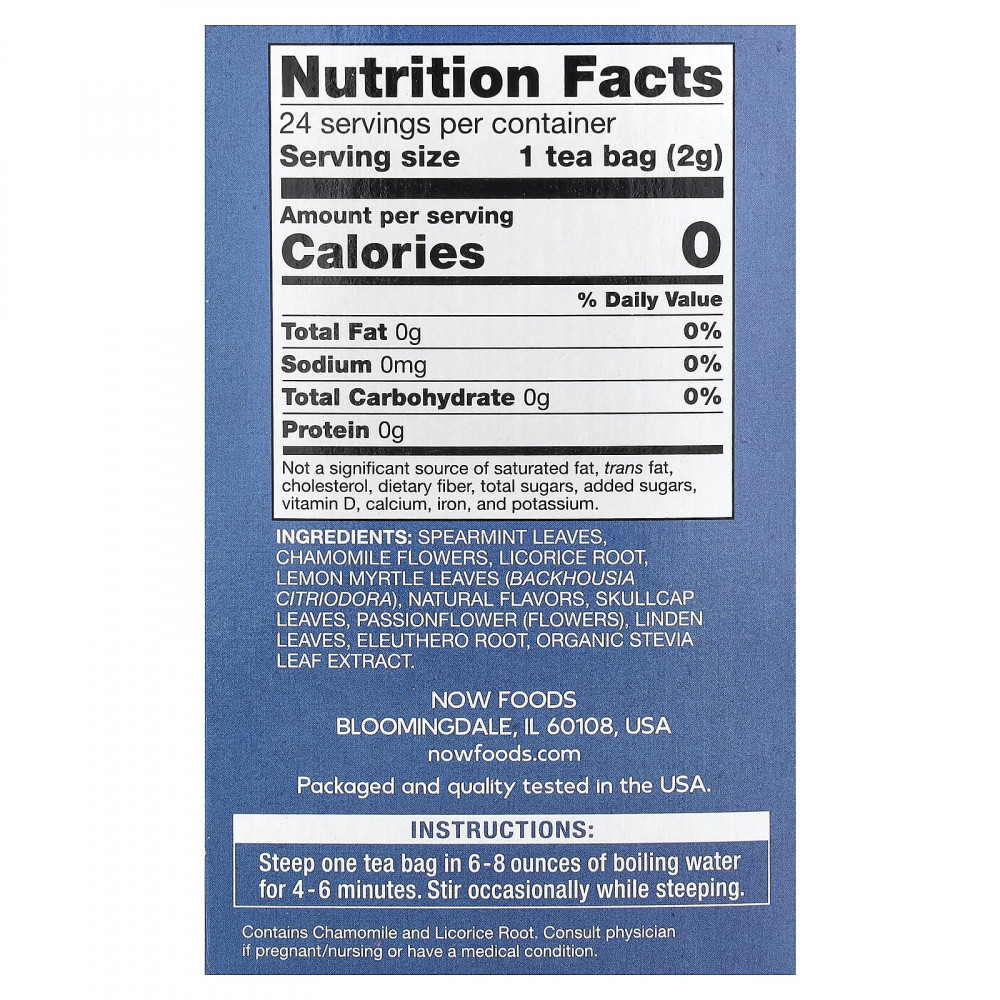Листья мяты и цветки ромашки, корень солодки, листья мирта лимонного (Backhousia citriodora), натуральные ароматизаторы, тюбетейка листья, пассифлора (цветы), листья липы, корень элеутерококка, органический экстракт листьев стевии.