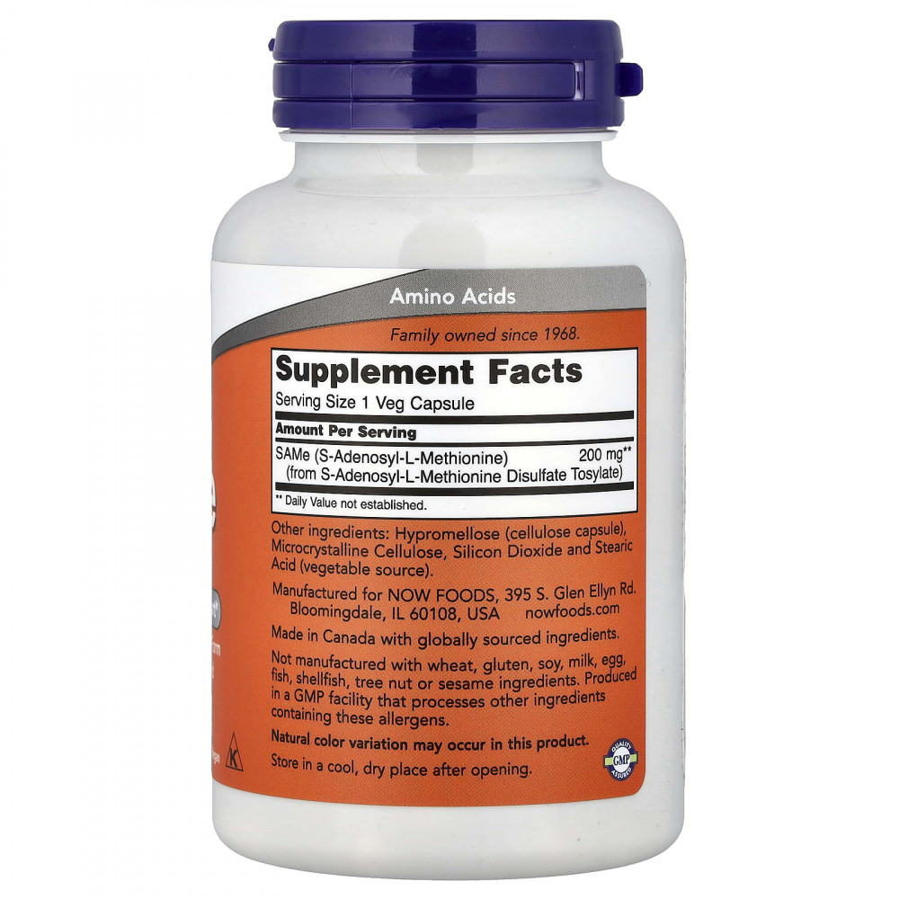 Только для взрослых. Лицам, страдающим биполярной депрессией, тревожными расстройствами или принимающим антидепрессанты, не следует принимать SAMe без профессионального медицинского наблюдения. Если вы беременны, кормите грудью, принимаете лекарства или у вас есть заболевания, проконсультируйтесь с врачом. Хранить в недоступном для детей месте.