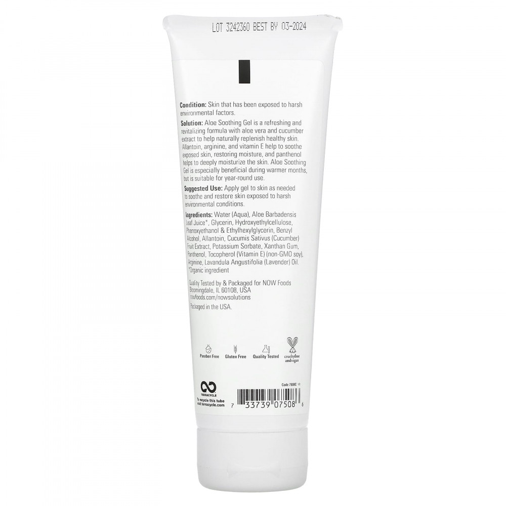 Решение: Aloe Soothing Gel — это освежающая и восстанавливающая формула с органическим экстрактом алоэ вера и огурца, которые помогают естественным образом восстановить здоровье клеток кожи. Аллантонин, L-аргинин и витамин Е помогают смягчить неприятные ощущения и раздражение кожи, которая слишком долго подвергалась воздействию солнечных лучей, и восстанавливают поврежденную кожу. Пантенол проникает в кожу и глубоко увлажняет ее.