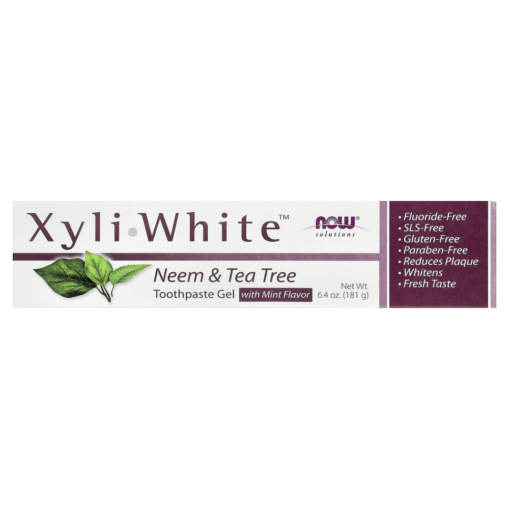 Ингредиенты: вода, ксилитол (25%), гидратированный диоксид кремния, глицерин, сорбитол, бикарбонат натрия, карбонат кальция, карбонат натрия, экстракт дерева ним (Melia azadirachta), масло из листьев чайного дерева (Melaleuca alternifolia), масло из листьев грушанки (Gaultheria procumbens), натуральный мятный ароматизатор, папаин, ксантановая камедь, кокосульфат натрия.