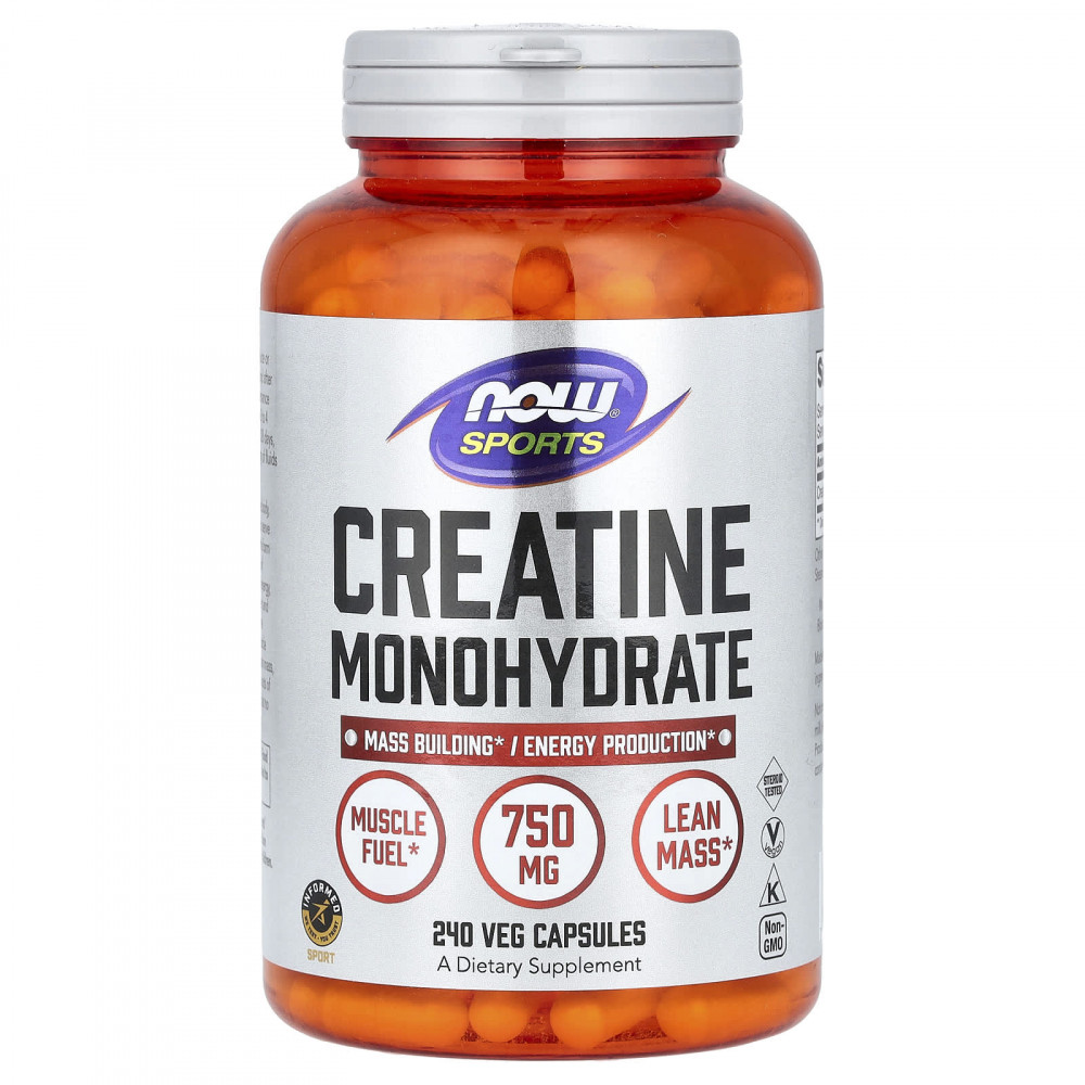 Креатин — это соединение, которое естественным образом присутствует в организме, в первую очередь в скелетных мышцах. Функция креатина заключается в том, чтобы служить в качестве предшественника аденозинтрифосфата (АТФ), формы химической энергии, используемой всеми клетками. Запасы креатина в организме формируют резерв легкодоступного АТФ для быстрого получения энергии при высокоинтенсивных нагрузках. Исследования показали, что дополнительный прием креатина помогает сохранить имеющуюся мышечную ткань, способствует росту и развитию мышечной массы и обеспечивает оптимальную производительность во время коротких периодов интенсивных упражнений. Моногидрат креатина NOW® не содержит добавок и консервантов.