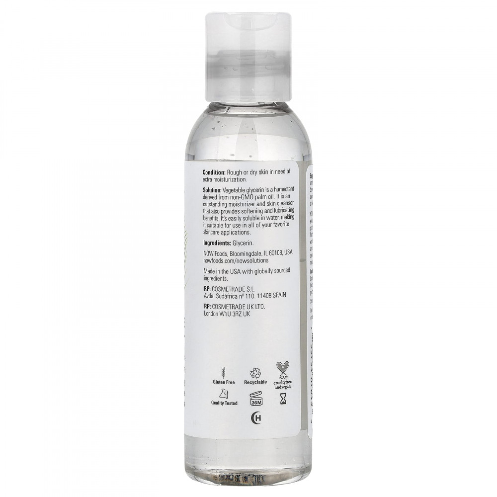 Решение. Растительный глицерин - это увлажняющий компонент, полученный из пальмового масла без ГМО. Это превосходное увлажняющее и очищающее средство для кожи, а также смягчает и смазывает кожу. Оно легко растворяется в воде, что делает его подходящим для использования во всех ваших любимых средствах для ухода за кожей.