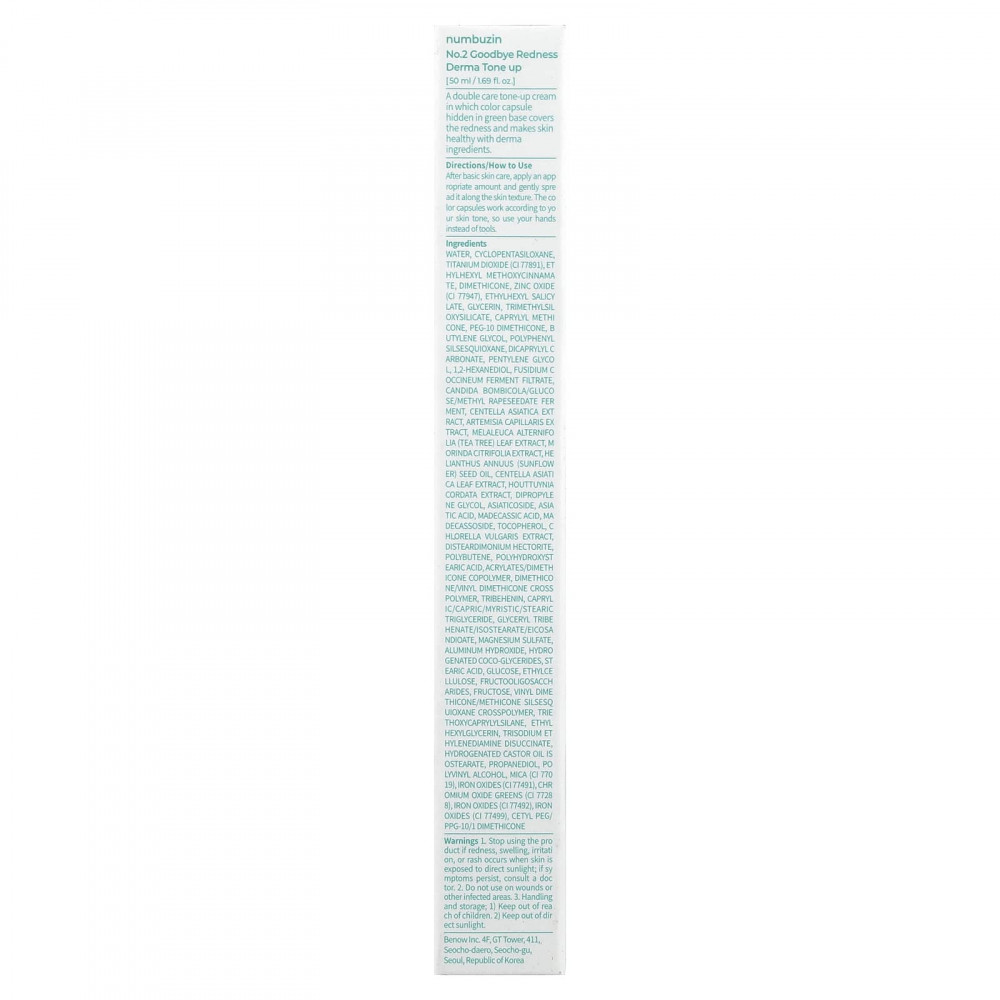Вода, циклопентасилоксан, диоксид титана (CI 77891), этилгексил метоксициннамат, диметикон, оксид цинка (CI 77947), этилгексил салицилат, глицерин, триметилсилоксисиликат, каприлил метикон, ПЭГ-10 диметикон, бутиленгликоль, полифенил силсесквиоксан, дикаприлил карбонат, пентилен гликоль, 1,2-гександиол, фильтрат фермента фузидиума кошениленосного (Fusidium coccineum), кандида бомбикола (Candida bombicola)/глюкоза/фермент метила рапса, экстракт готу колы (Centella asiatica), экстракт полыни (Artemisia capillaris), экстракт листьев чайного дерева (Melaleuca alternifolia), экстракт нони (Morinda citrifolia), подсолнечное масло (Helianthus annuus), экстракт листьев готу колы (Centella asiatica), экстракт хауттюйнии (Houttuynia cordata), дипропиленгликоль, азиатикозид, азиатиковая кислота, мадекассовая кислота, мадекассосид, токоферол, экстракт хлореллы (Chlorella vulgaris), дистеардимония гекторит, полибутен, полигидроксистеариновая кислота, акрилат/диметикон сополимер, диметикон/винил диметикон кроссполимер, трибехенин, каприловый/каприновый/миристиновый/стеариновый триглицерид, глицерил трибегенат/изостеарат/эйкозандиоат, сульфат магния, гидроксид алюминия, гидрогенизированные кокоглицериды, стеариновая кислота, глюкоза, этилцеллюлоза, фруктоолигосахариды, фруктоза, винил диметикон/метикон силсесквиоксан кроссполимер, триэтоксикаприлилсилан, этилгексилглицерин, тринатрия этилендиамин дисукцинат, изостеарат гидрогенизированного касторового масла, пропандиол, поливиниловый спирт, слюда (CI 770 19), оксиды железа (CI 77491), зелень с оксидом хрома (CI 7728 8), оксиды железа (CI 77492), оксиды железа (CI 77499), цетил ПЭГ/ППГ-10/1 диметикон.