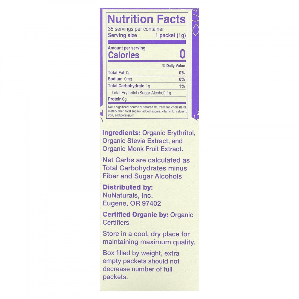 Эритритол - это подсластитель, который естественным образом содержится в некоторых фруктах, овощах и ферментированных продуктах. Он используется для облегчения измерения и действует как агент текучести, поэтому концентрированные экстракты стевии и архата можно расфасовывать в пакетики.