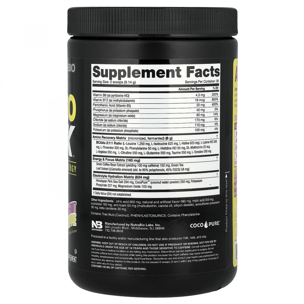 Хранить в недоступном для детей месте. Не принимайте во время беременности и кормления грудью. Не предназначено для лиц младше 18 лет и лиц, чувствительных к кофеину. Проконсультируйтесь с врачом перед использованием, если у вас есть заболевания или вы принимаете какие-либо лекарства. Прием следует прекратить за две недели до планируемой хирургической операции. Не употребляйте кофеин из других источников во время приема этого продукта, поскольку слишком много кофеина может вызвать нервозность, раздражительность, бессонницу и иногда учащенное сердцебиение. Немедленно прекратите использование и обратитесь к медицинскому работнику, если у вас возникнут какие-либо побочные реакции на этот продукт. Не употребляйте более 6 мерных ложек (3 порции) в течение 4 часов и 10 мерных ложек (5 порций) в течение 24 часов.