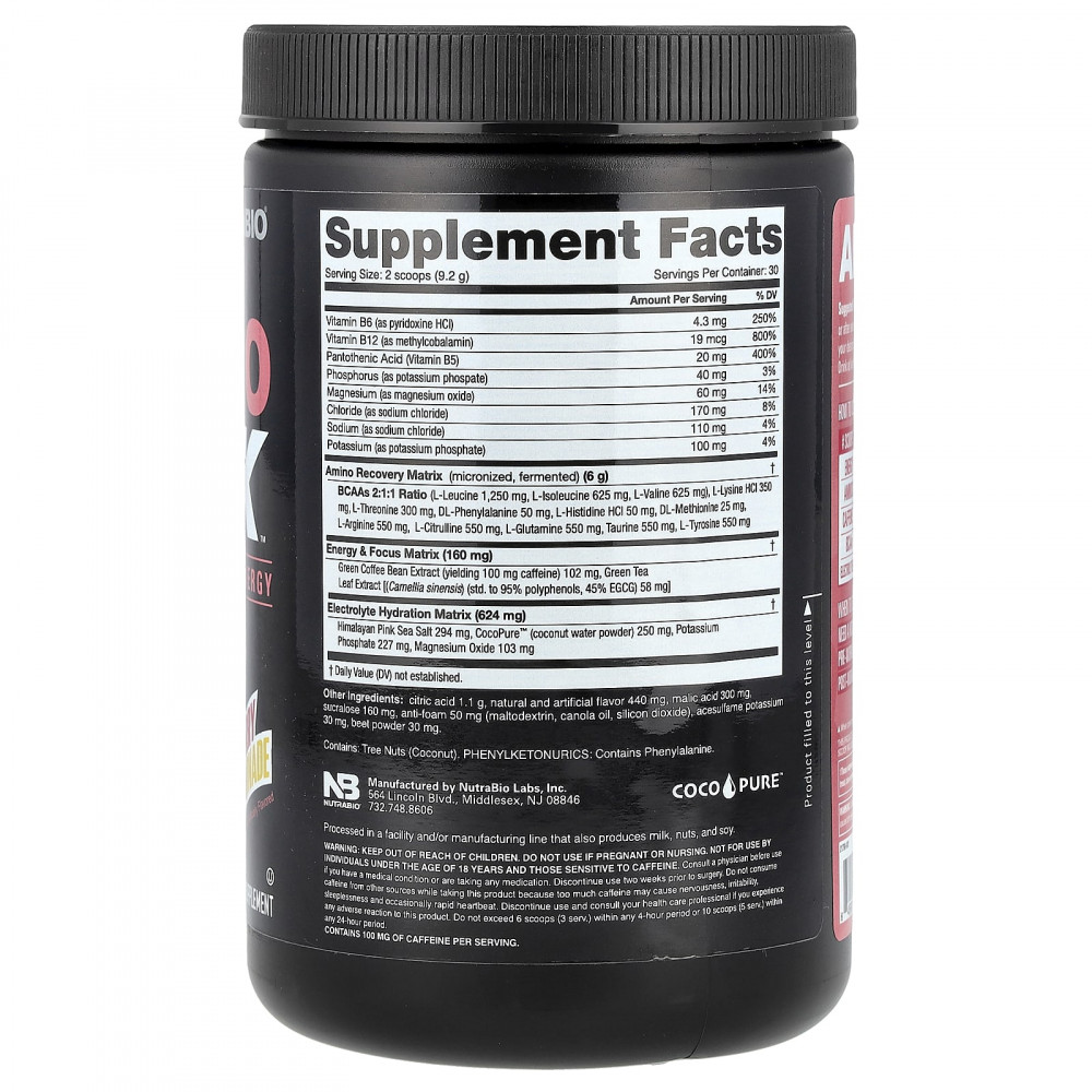 Хранить в недоступном для детей месте. Не следует принимать в период беременности или кормления грудью. Не предназначено для лиц младше 18 лет и лиц, чувствительных к кофеину. Проконсультируйтесь с врачом перед использованием, если у вас есть заболевания или вы принимаете какие-либо лекарства. Приём следует прекратить за две недели до планируемой хирургической операции. Не употребляйте кофеин из других источников во время приема этого продукта, поскольку слишком много кофеина может вызвать нервозность, раздражительность, бессонницу и иногда учащенное сердцебиение. Прекратите использование и обратитесь к врачу, если у вас возникнут какие-либо побочные реакции на этот продукт. Не употребляйте более 6 мерных ложек (3 порции) в течение 4 часов и 10 мерных ложек (5 порций) в течение 24 часов.