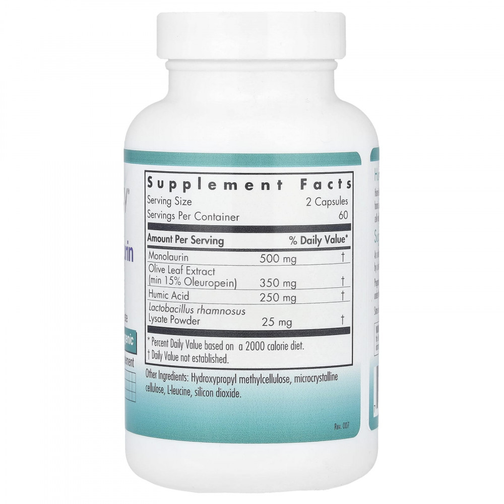 Гуминово-монолауриновый комплекс сочетает в себе специально выделенную и очищенную гуминовую кислоту с монолаурином, экстрактом листьев оливкового дерева и фрагментами клеточной стенки лактобактерий рамнозуса (Lactobacillus rhamnosus).