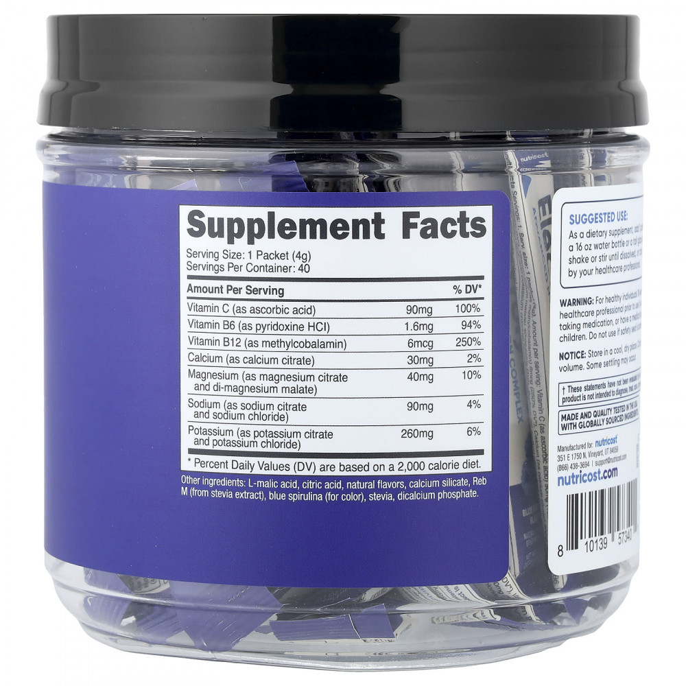 Электролиты Nutricost: Комплекс для улучшенного увлажнения доступен в стиках по 40 порций, которые можно взять с собой. Добавка содержит 7 витаминов и минералов и подслащена стевией. Благодаря этому поддерживать водный баланс в любом месте очень просто.