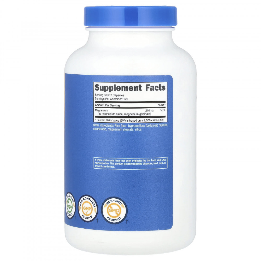 | Магний (в виде оксида магния, глицината магния) | 210 мг | 50% |