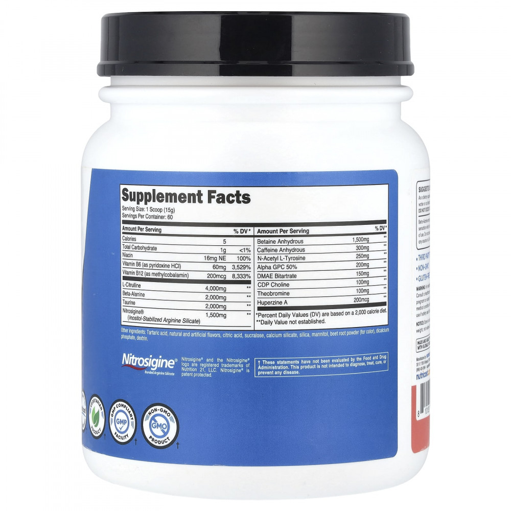 Бета-аланин может вызывать легкое покраснение и/или покалывание, что безвредно и проходит в течение нескольких часов после использования. Не употребляйте более 400 мг кофеина из любого источника в течение 24 часов.
