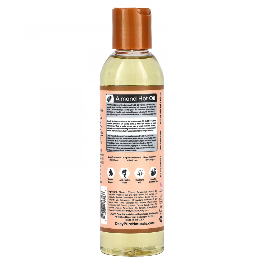 Масло сладкого миндаля богато витаминами A, B1, B2, B6, D и E. Эти питательные вещества способствуют укреплению, здоровью и густоте волос, предотвращая ломкость волос.