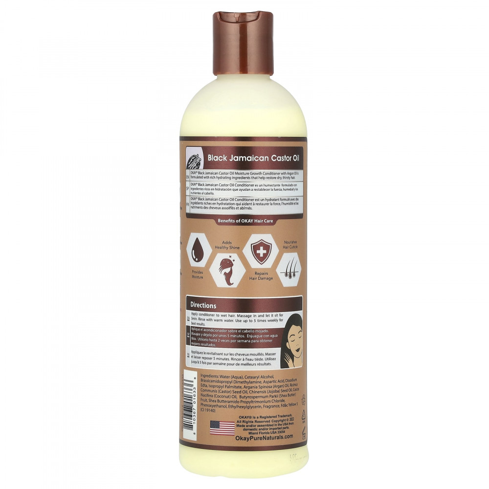 Увлажняющий кондиционер для роста волос Okay® с черным ямайским касторовым и аргановым маслом содержит насыщенные увлажняющие ингредиенты, которые способствуют восстановлению сухих волос.