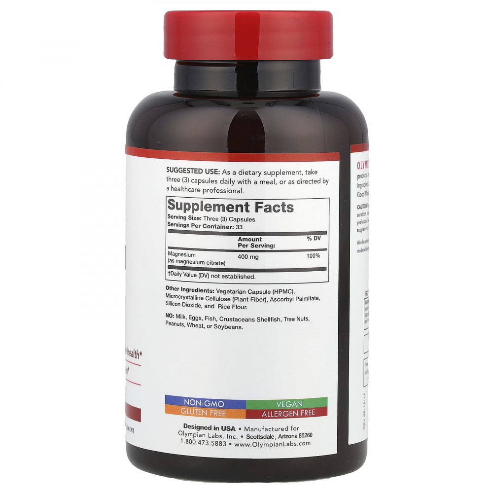 | Магний (в форме цитрата магния) | 400 мг | 100 % |