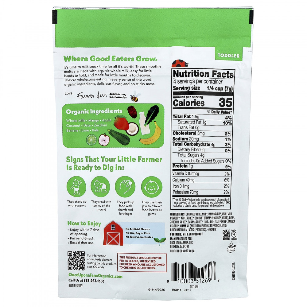 Кисломолочное цельное молоко *, пюре из манго *, сухое цельное молоко *, яблочное пюре *, кокосовый крем * (кокос *, вода), дата *, пюре из кабачков *, банановое пюре *, сок лайма *, порошок из капусты *, тапиоковый крахмал*, витамин Е (смешанные токоферолы для защиты вкуса), бифидобактерии лактис (пробиотик).