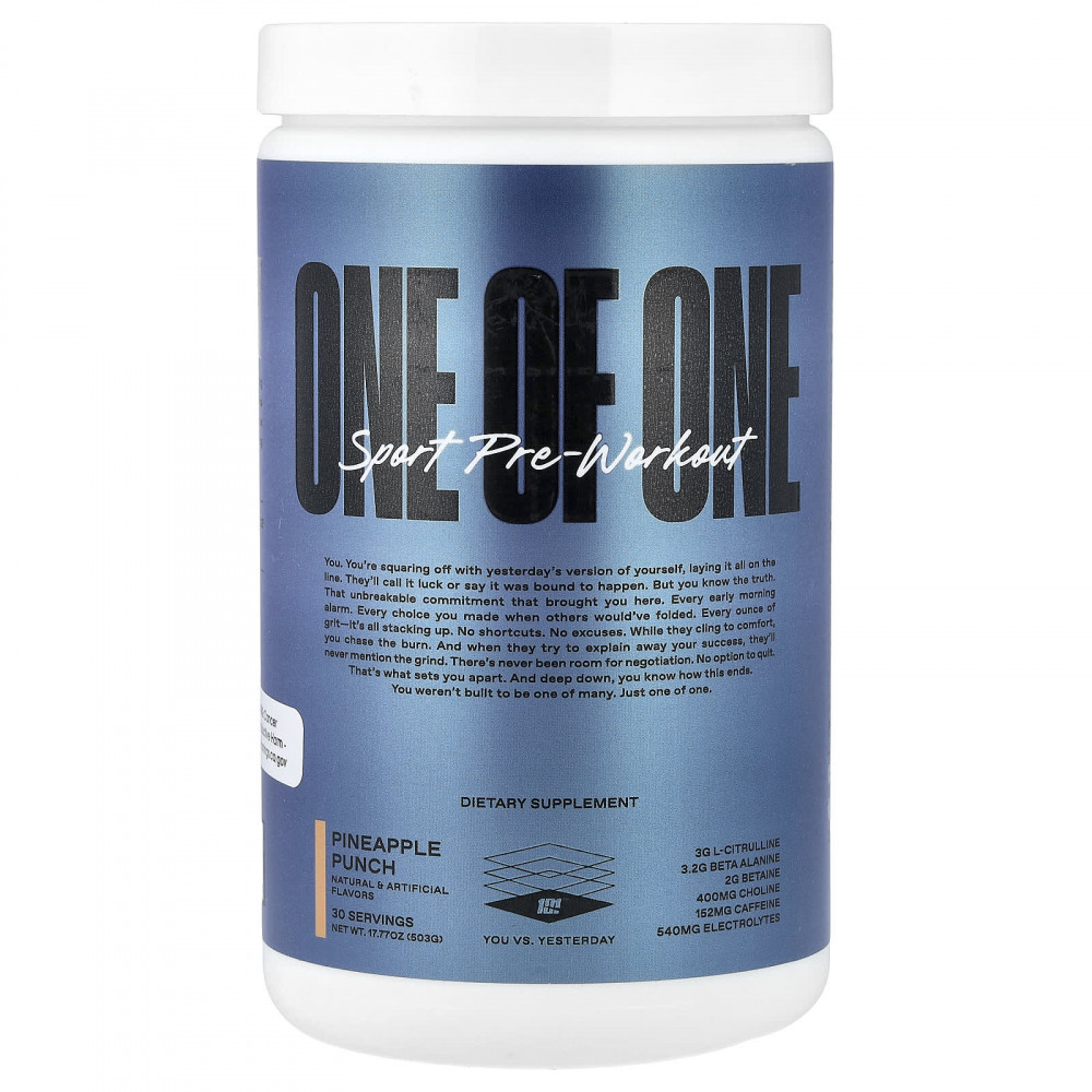Предтренировочный комплекс One of One Sport Pre-Workout — это источник быстродействующей энергии со специальной смесью эффективных ингредиентов, включая NeuroRush™ и электролиты, которые повысят выносливость, концентрацию и результативность. Он создан, чтобы подпитывать вашу работу, давая возможность работать интенсивнее и дольше.
