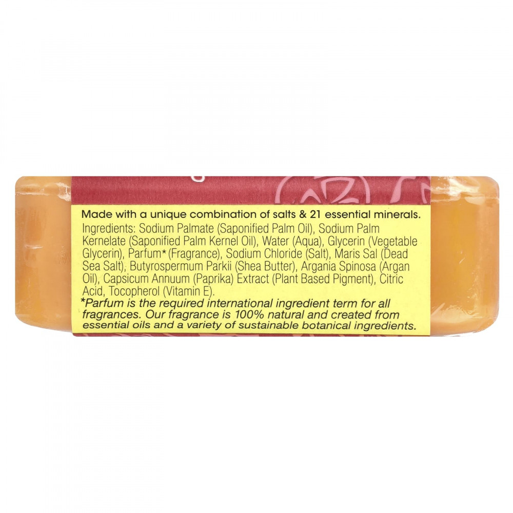 Пальмат натрия (омыленное пальмовое масло), пальмовый кернелат натрия (омыленное пальмоядровое масло), вода (Aqua), глицерин (растительный глицерин), парфюмерная композиция* (отдушка), хлорид натрия (соль), соль Мертвого моря (Maris sal), масло ши (Butyrospermum parkii), аргановое масло (Argania spinosa), экстракт паприки (Capsicum annuum) (пигмент на растительной основе), лимонная кислота, токоферол (витамин Е).