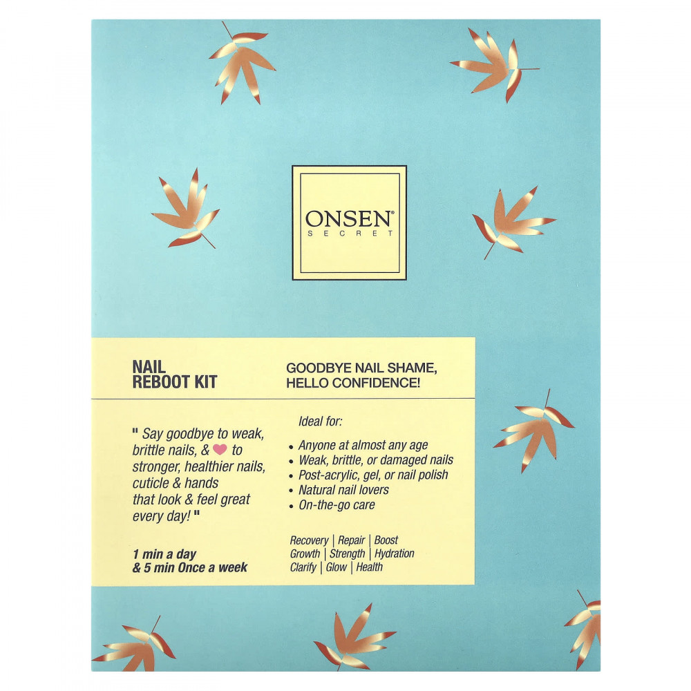 Неважно, в каком состоянии находятся ваши ногти - с пятнами, выступами, тонкими или недавно снятыми искусственными ногтями - наша программа Nail Reboot Challenge может вам помочь. Наш продукт предназначен для борьбы с первопричиной сухости и слабости ногтей и стимуляции кровообращения для оптимальной доставки питательных веществ. С Onsen Secret вы не просто воздействуете на поверхность, а создаете здоровую основу, которая долговечна.