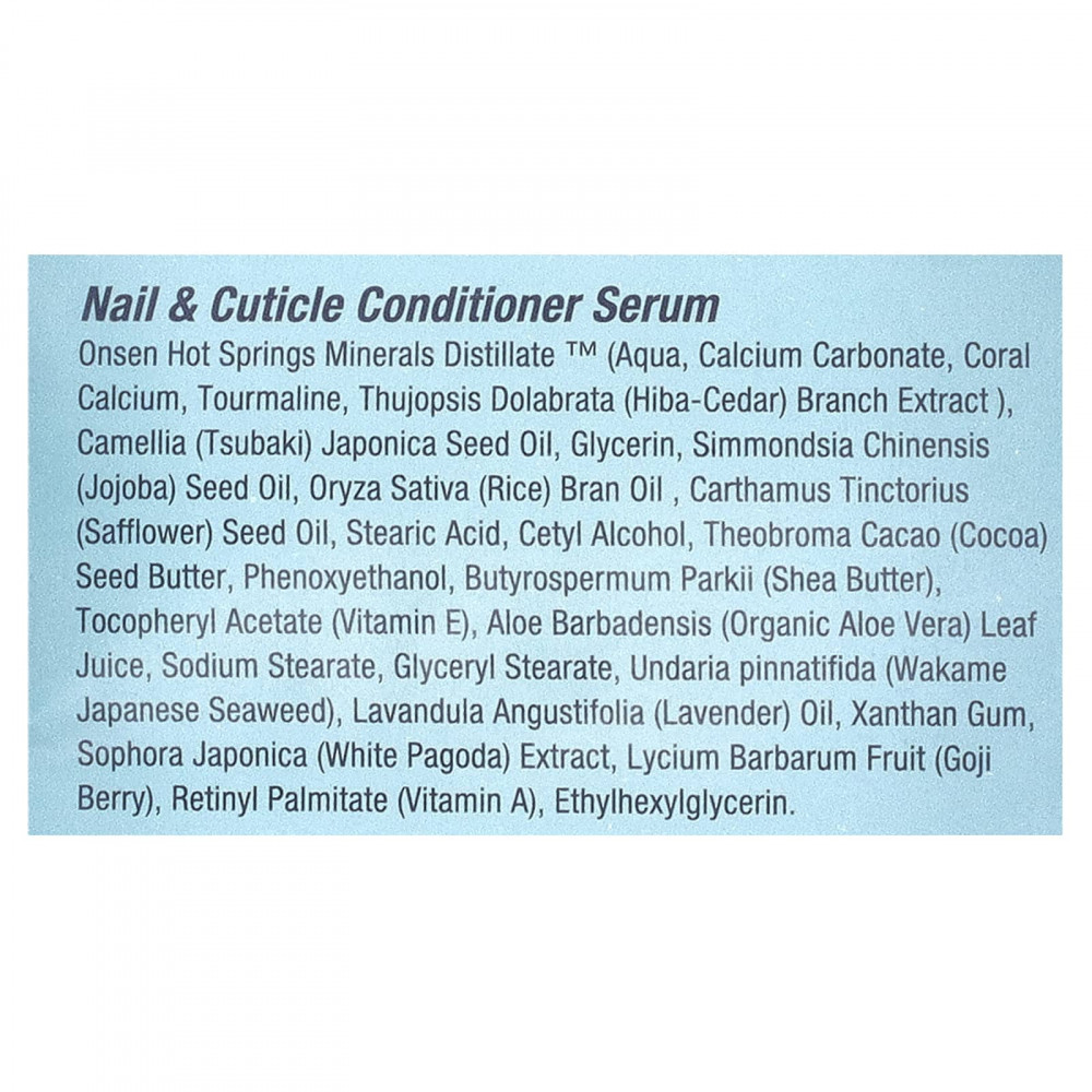 Гвоздь & amp; Сыворотка-кондиционер для кутикулы: Онсенская вода + кверцетин, масло цубаки, масло ши и масло кокосовое масло, масло из рисовых отрубей, ягоды годжи, алоэ вера.
