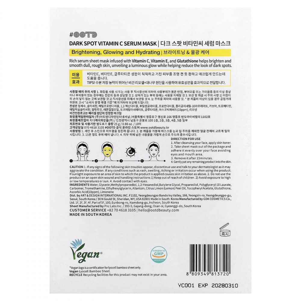 Сывороточная тканевая маска с витамином C, витамином E и глутатионом помогает осветлить и разгладить тусклую, огрубевшую кожу, придавая ей сияние, помогая уменьшить темные пятна.