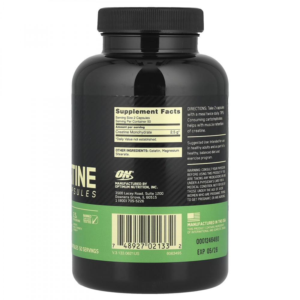 Принимать по 2 капсулы два раза в день во время еды. СОВЕТ: употребление углеводов способствует восстановлению запасов креатина в мышцах.