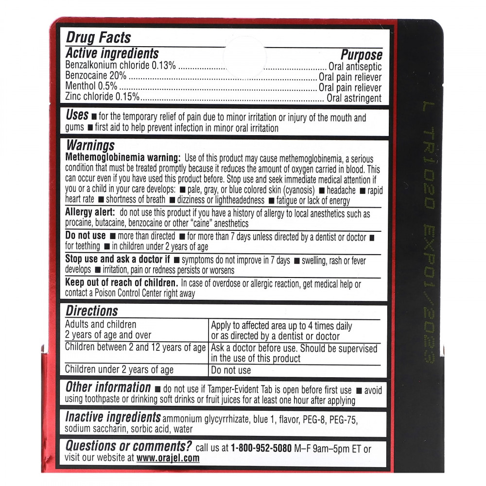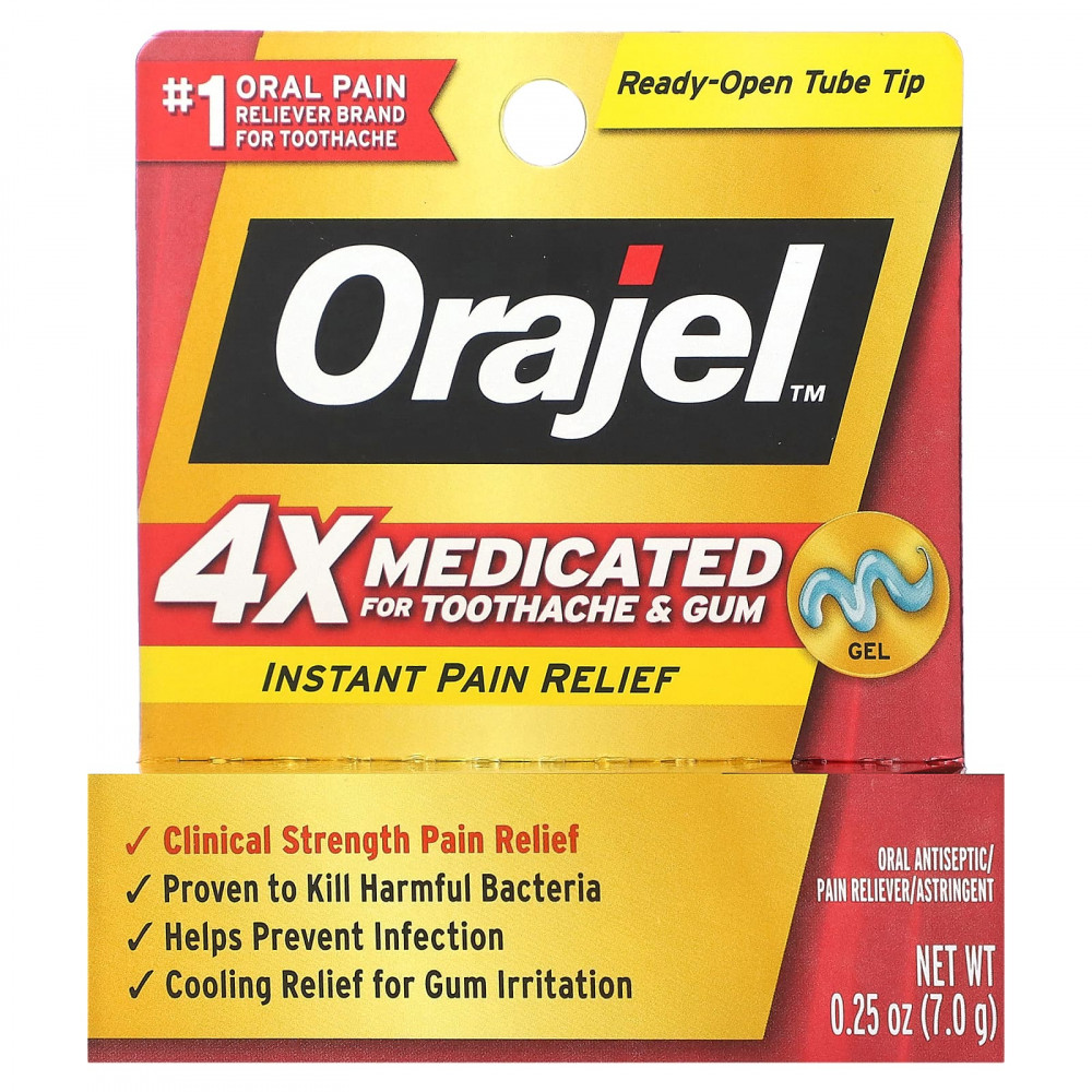 Гель для лечения зубной боли и десен Orajel ™ 4X обеспечивает мгновенное облегчение боли при сильной зубной боли и болезненных ощущениях в деснах. Формула сочетает в себе силу четырех активных ингредиентов для быстрого местного обезболивания.