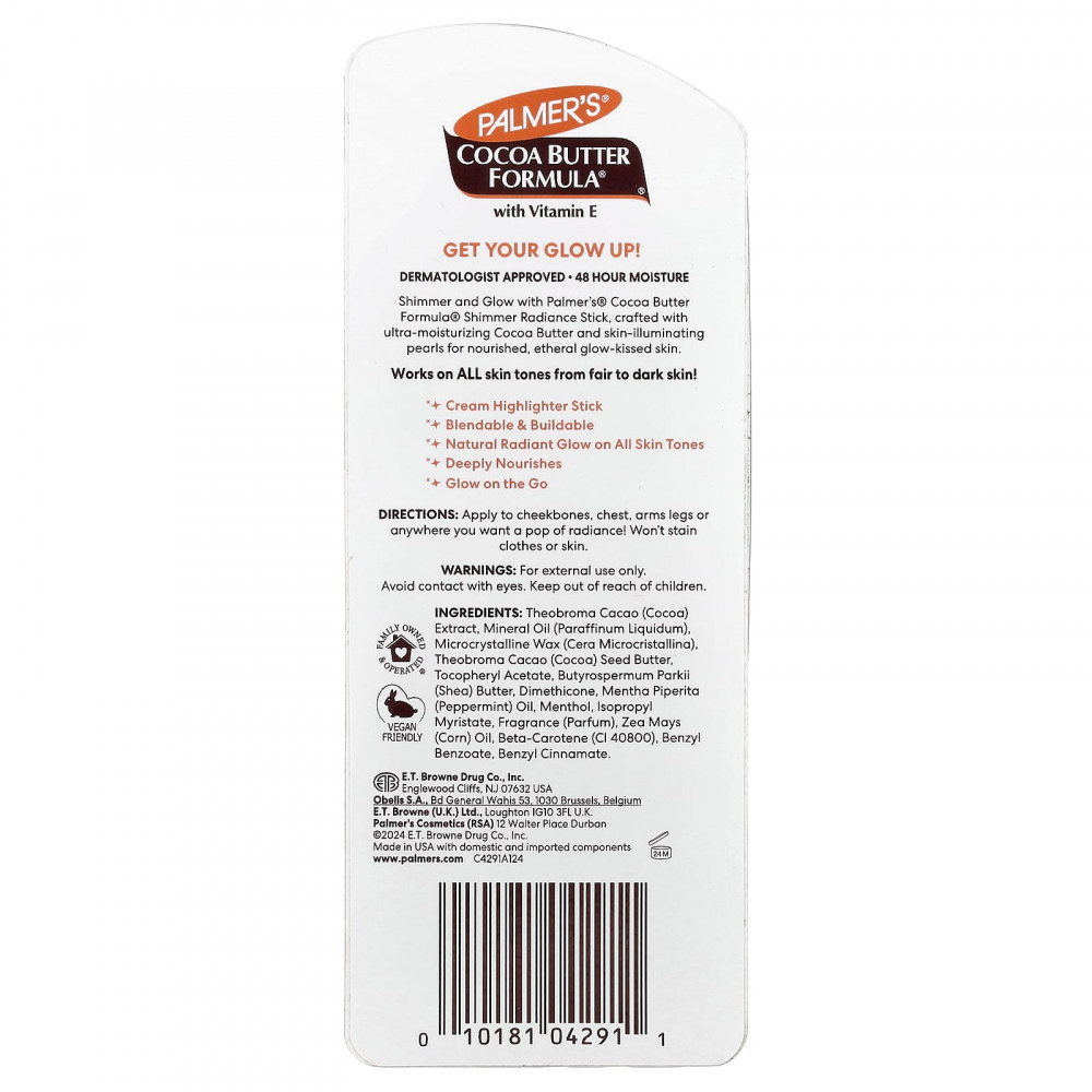 Сияние и сияние с маслом какао-маслом Palmer's® для сияния кожи. Стик-стик для сияния кожи создан на основе ультраувлажняющего масла какао и гранул, которые обеспечивают сияние кожи.