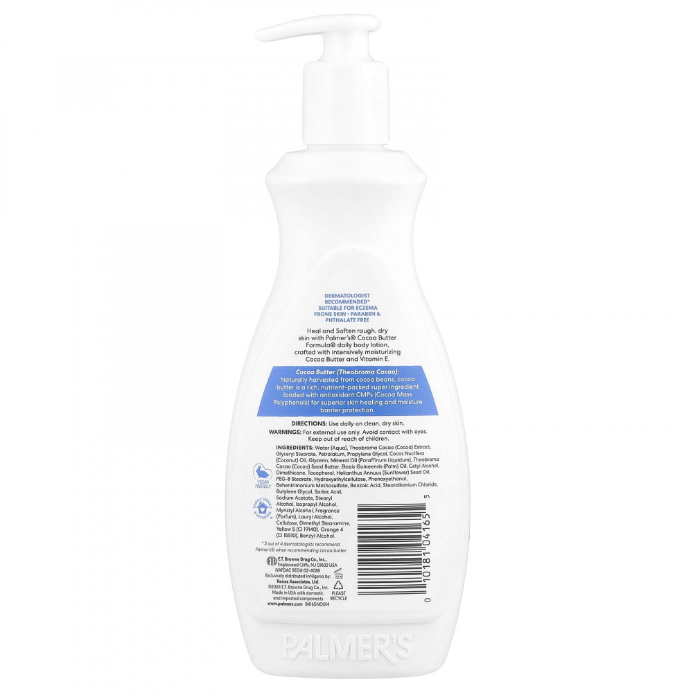 Излечите и смягчите огрубевшую, сухую кожу с помощью ежедневного лосьона для тела Palmer's® Cocoa Butter Formula®, созданного на основе интенсивно увлажняющего масла какао и витамина Е.