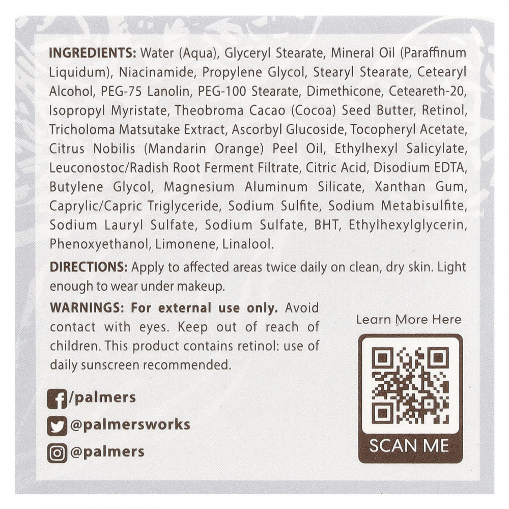 Заметно уменьшает обесцвечивание, признак старения № 1... С кремом для выпрямления волос Shocoa Butter Formula® от Palmer's®. Усовершенствованная смесь нашего комплекса для улучшения тона кожи заметно устраняет нежелательные обесцвечивания, темные и пигментные пятна, вызванные повреждением солнцем, старением кожи или рубцами.