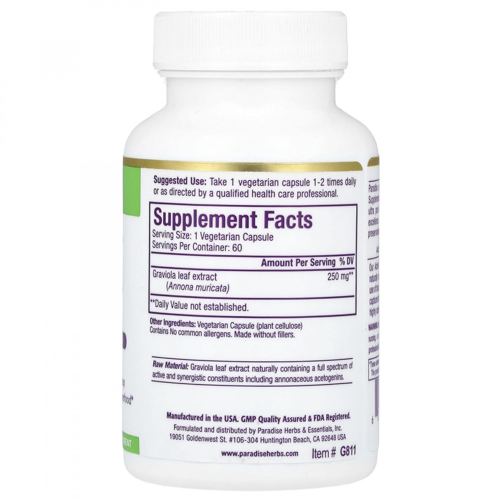 | Экстракт листьев гравиолы (Annona muricata) | 250 мг | ** |