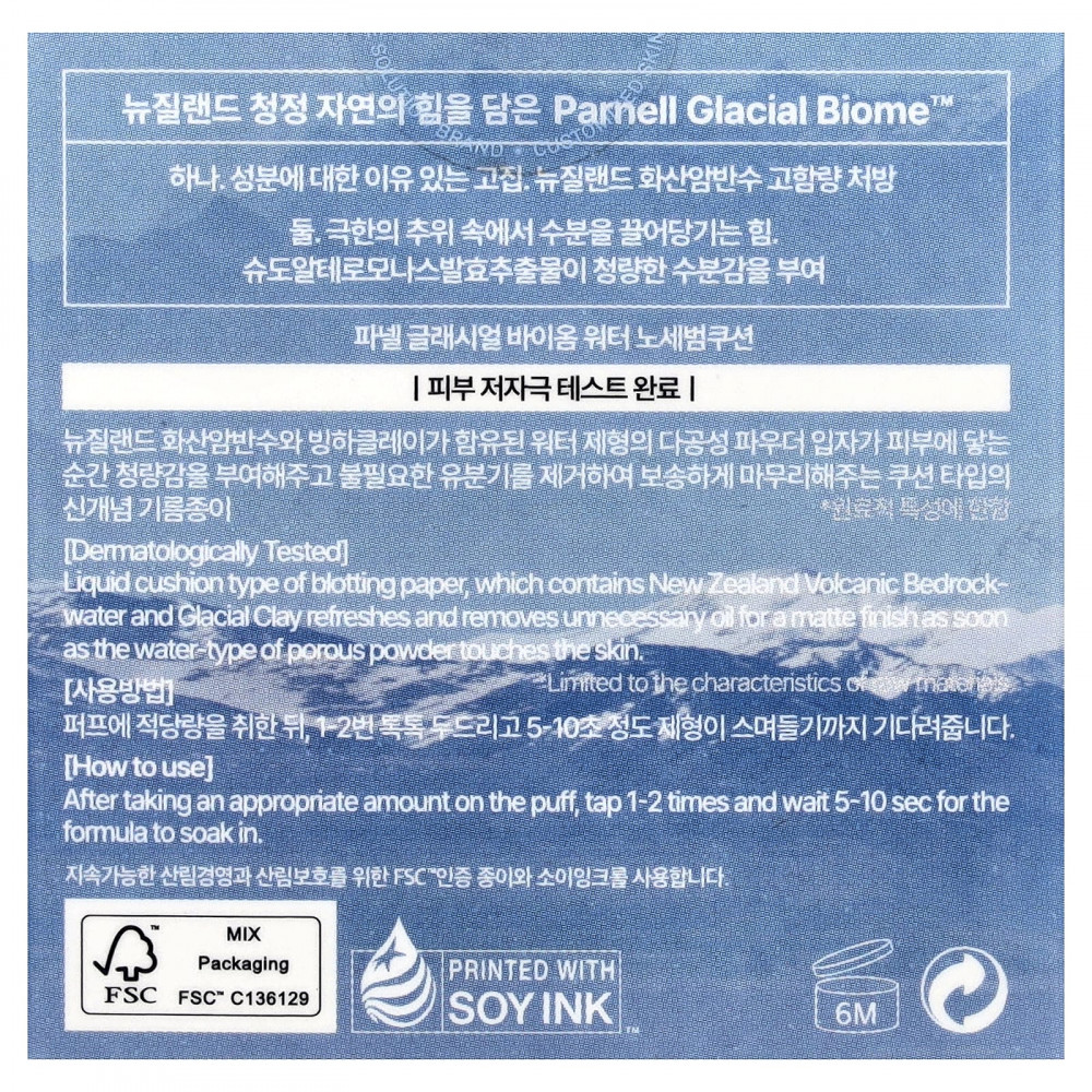 Жидкая промокательная бумага, которая содержит воду из новозеландских вулканических пород и ледниковую глину, освежает и удаляет ненужный жир, придавая коже матовый оттенок, как только водная пористая пудра касается кожи.