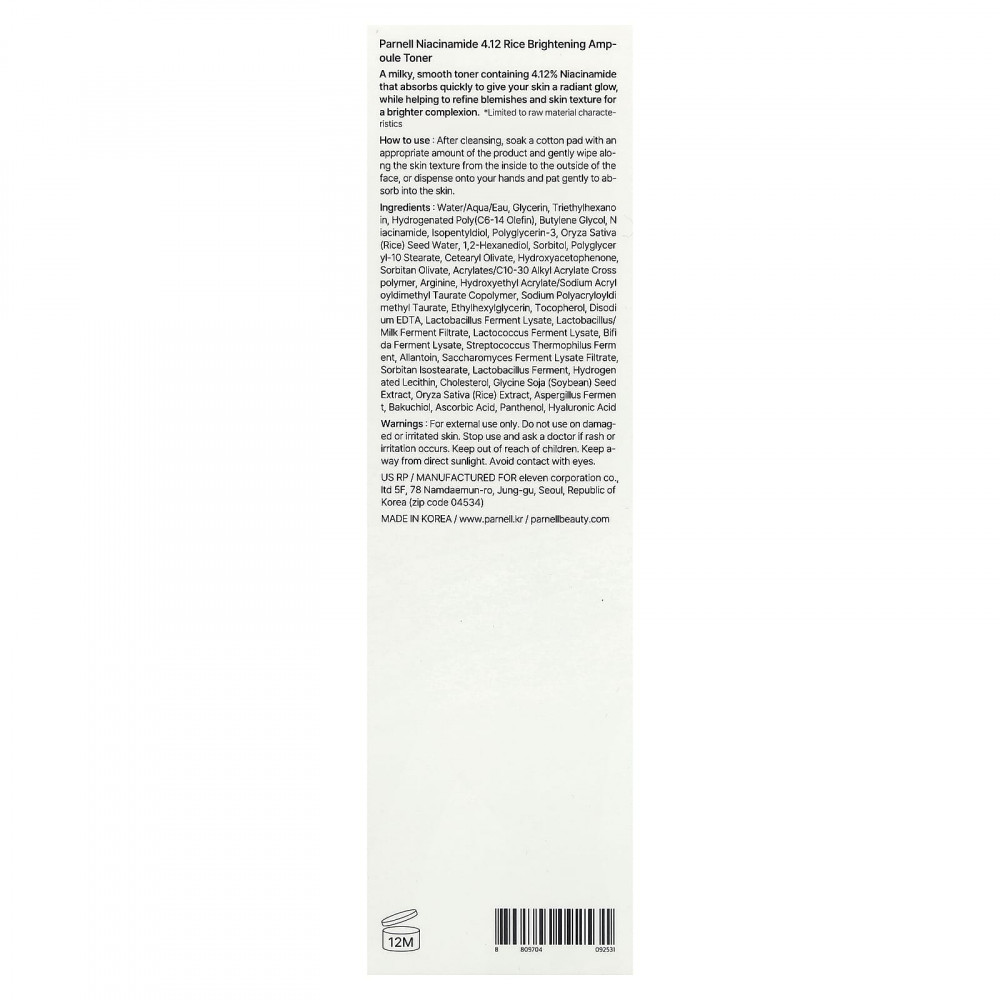Молочный тоник для гладкой кожи, содержащий 4,12% никотинамида, который быстро впитывается, придавая коже сияние, помогает улучшить текстуру кожи и придать ей сияние.