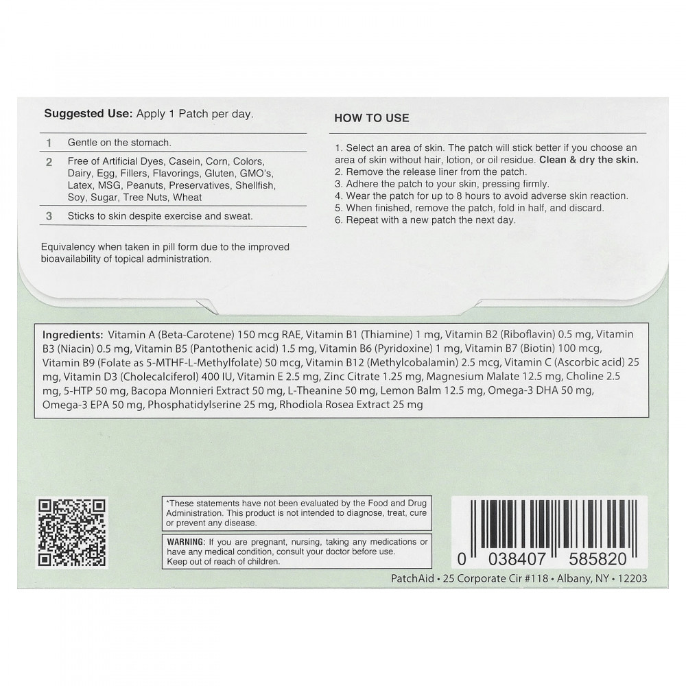 Не носите патч более 8 часов. При появлении раздражения или сыпи немедленно прекратите использование. Если раздражение кожи не проходит или усиливается, немедленно обратитесь к медицинскому работнику.