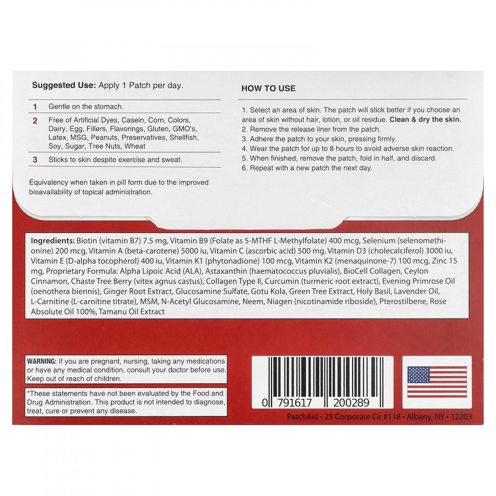 Не носите патч более 8 часов. При появлении раздражения или сыпи немедленно прекратите использование. Если раздражение кожи не проходит или усиливается, немедленно обратитесь к медицинскому работнику.