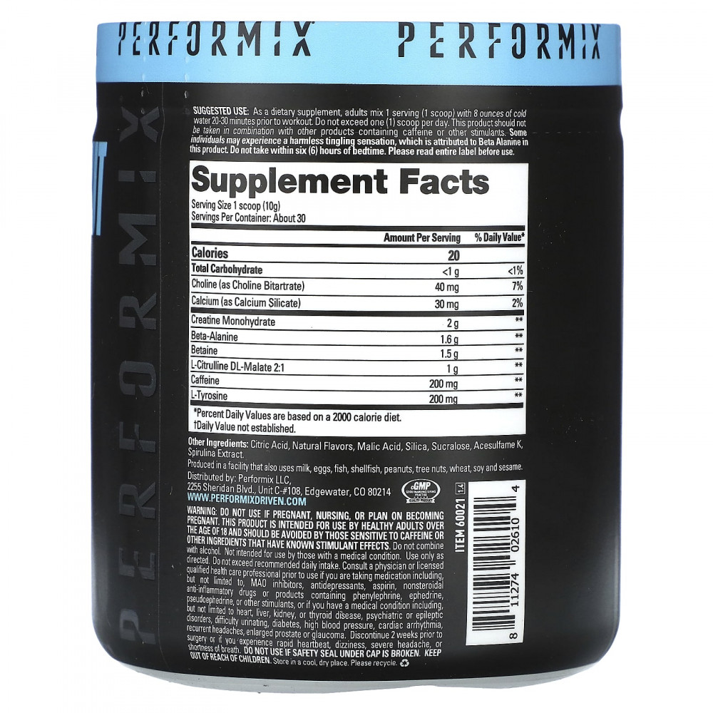 В качестве пищевой добавки для взрослых смешайте 1 порцию (1 мерную ложку) с 240 мл (8 унциями) холодной воды за 20–30 минут до тренировки. Не принимать более одной (1) мерной ложки в день. Этот продукт не следует принимать в сочетании с другими продуктами, содержащими кофеин или другие стимуляторы. Некоторые люди могут испытывать безобидное покалывание, связанное с присутствием в этом продукте бета-аланина. Не принимать в течение шести (6) часов до сна. Перед использованием прочитайте всю информацию на этикетке.