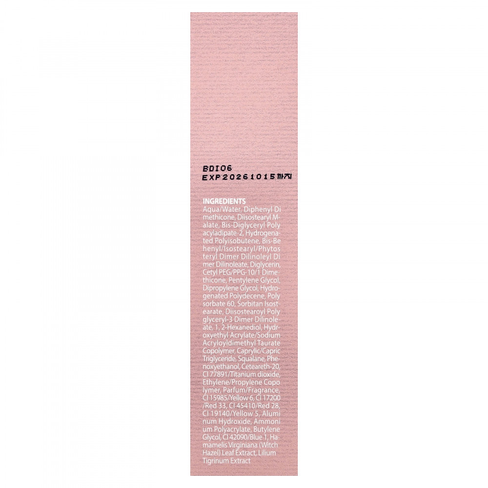 Вода, дифенил диметикон, диизостеарил малат, бис-диглицерил полиациладипат-2, гидрогенизированный полиизобутен, бис-бегенил/изостеарил/фитостерил димер дилинолеил димер дилинолеат, диглицерин, цетил ПЭГ/ППГ-10/1 диметикон, пентилен гликоль, дипропиленгликоль, гидрогенизированный полидецен, полисорбат 60, сорбитан изостеарат, диизостеароил полиглицерил-3 димер дилинолеат, 1,2-гександиол, гидроксиэтил акрилат/натрия акрилоилдиметилтаурата сополимер, каприловый/каприновый триглицерид, сквалан, феноксиэтанол, цетеарет-20, ци 77891 / диоксид титана, сополимер этилена/пропилена, парфюмерная композиция/отдушка, CI 15985 / желтый 6, CI 17200 / красный 33, CI 45410 / красный 28, краситель желтый 5 (CI 19140), гидроксид алюминия, полиакрилат аммония, бутиленгликоль, CI 42090 / синий 1, экстракт листьев гамамелиса (Hamamelis virginiana), экстракт лилии тигринум.